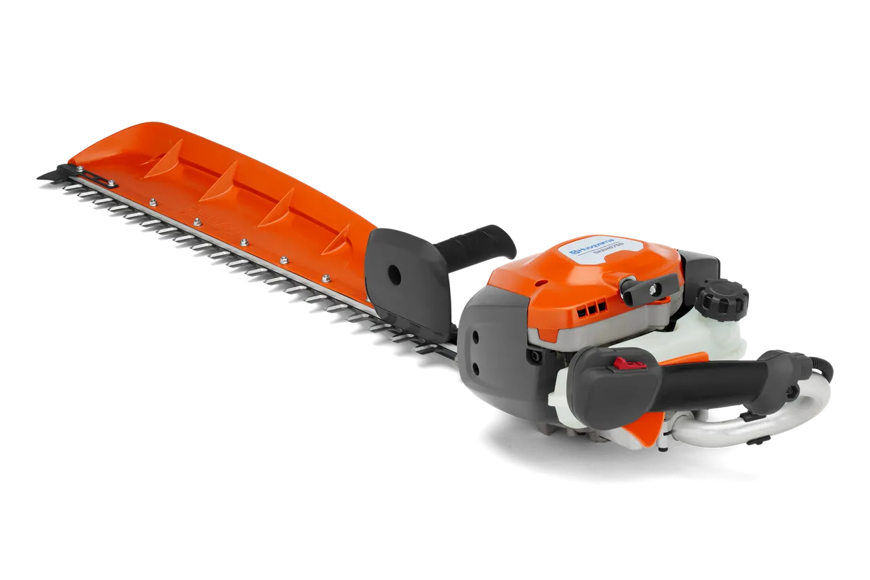 A 21.7cc, single-sided hedge trimmer with a 30″ cutter bar for trimming jobs. Equipped with a leaf catcher for less clean-up. The comfortable handle with optimized weight distribution and impressively low weight combined with the slim, balanced design and low vibration levels provide excellent handling, while the high capacity, high-speed professional knife blade and impressive power output allows for excellent cutting performance.