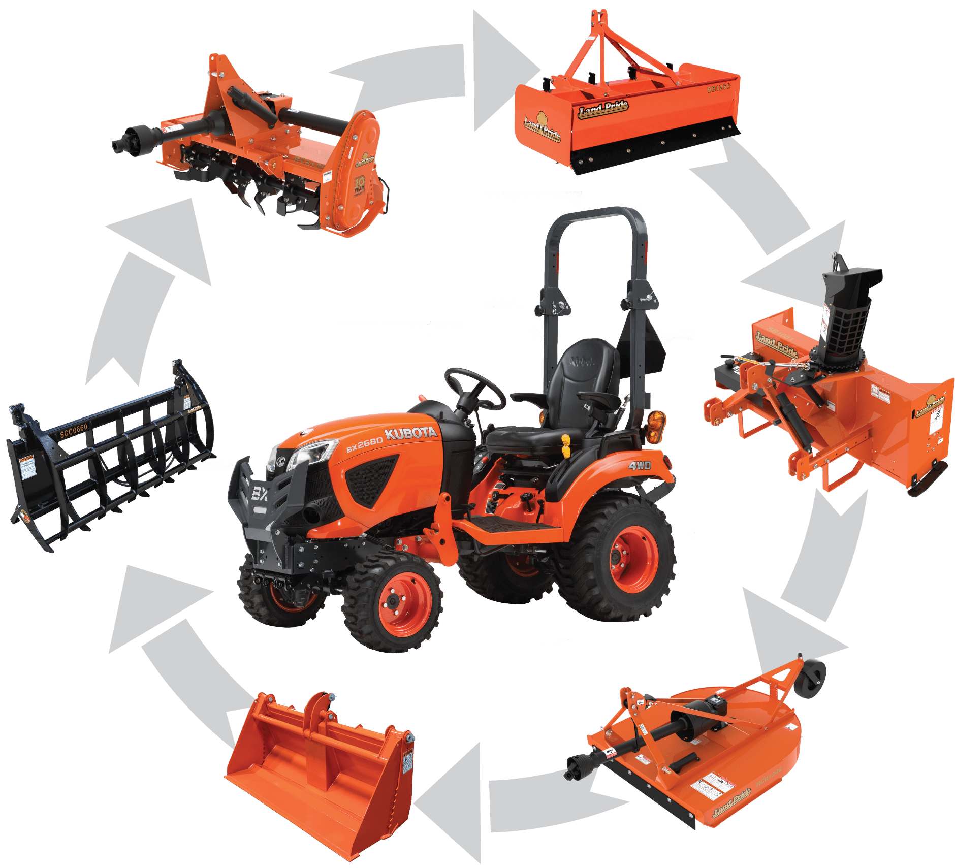 The most versatile compact tractor yet. From the moment you bring it home, the BX23S is ready to go to work loading, mowing, digging, and more. It comes with a performance-matched and fully integrated backhoe and front end loader as standard equipment. Kubota’s Swift-Connect and Swift-Tach systems let you quickly and easily attach the backhoe (Swift-Connect) and front loader (Swift-Tach). A heavy-duty reinforced frame provides the durability, stability, and strength to complete any tough task.